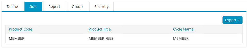 To review the billing product codes, go to Membership > Billing products. Review the values in the Code column and verify there are no spaces. If there are billing product codes that contain spaces, contact your AiSP to help you clean up the data.