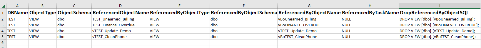 - Returned information: After running the ListNonImisDatabaseObjectNames and Additional Complexities scripts and dropping the customizations, run this script. This script will check for any broken views, views that are referencing dropped tables, or other dropped views.