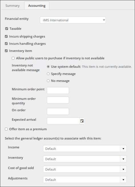 • Offer item as a premium - Enable to offer this product as a premium gift that donors are eligible to receive after donating to a gift item: