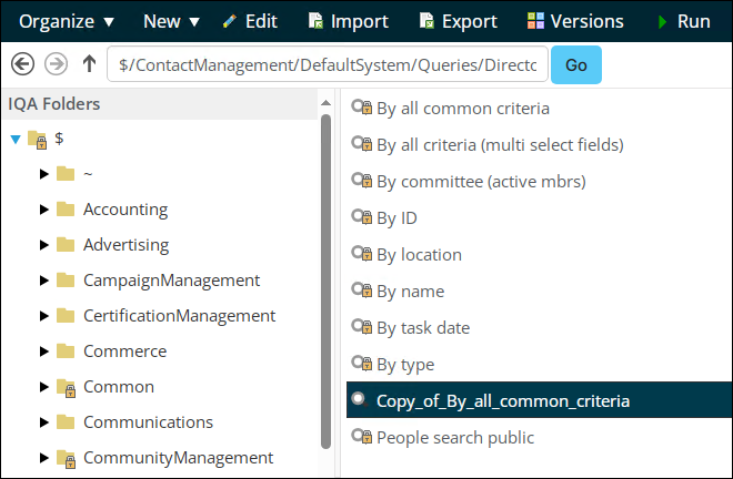 There are several queries in the Select a query drop-down, and each query can be copied and modified. The following example goes over how to modify the default People query: By all common criteria.