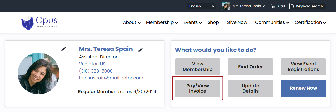 Note: The images and processes outlined may not be the exact steps your public users should take, since the iMIS out-of-the-box demonstration sites were used to illustrate the following examples. Be sure to review the processes before sending them to a public user.