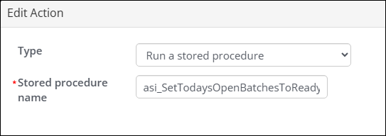 • Stored procedure name: asi_SetTodaysOpenBatchesToReady