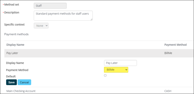 - (optional) If you need public users to have the option to Pay Later, add the BillMe payment method to the Public payment method set.