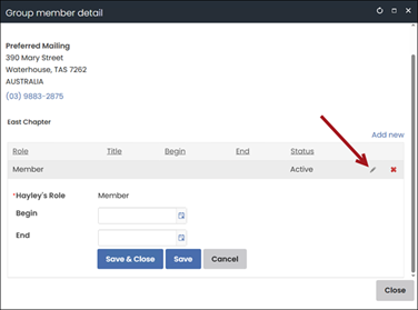 - Edit Begin and End dates of existing roles or add the Chapter Administrator role to a member.