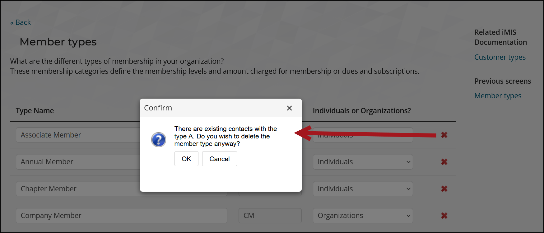 Important! Do not delete the M customer type. This customer type is required for event pricing groups and various other default pricing areas throughout iMIS.