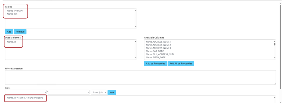 - Add the Name.ID column to the Used Columns.