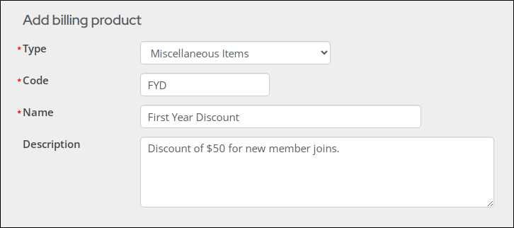 Important! The only billing products that will allow discount (negative) amounts are Miscellaneous Items (MISC).