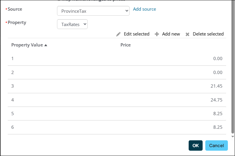 - Map the values you created in the Value list to the desired tax rates. For example: