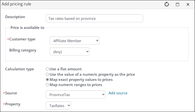 Example: Each Canadian province has different tax rates that you must accommodate. Use the if/then/else expression to create the special pricing rules for the different tax rates.