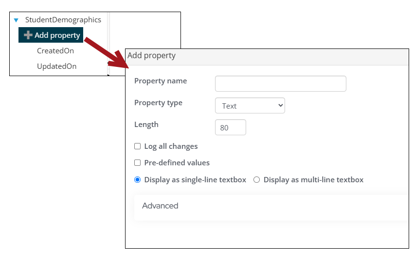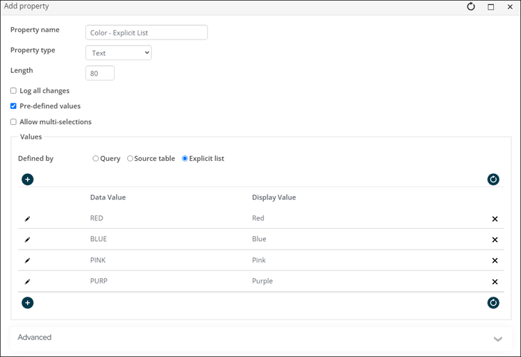 7. (Text Property type only) Enable Pre-defined values to display additional Text options: