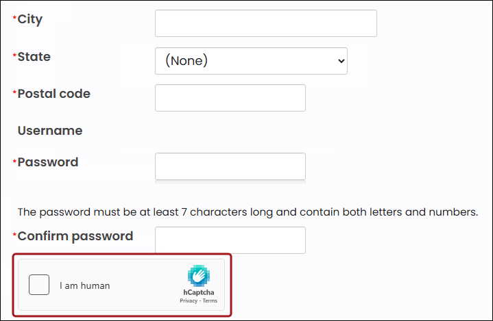 Note: These CAPTCHA settings are used on Request username, Reset password, Account creation pages and Contact Us forms only. If you are using a custom Form Builder form to create accounts, you must separately add CAPTCHA to that form.