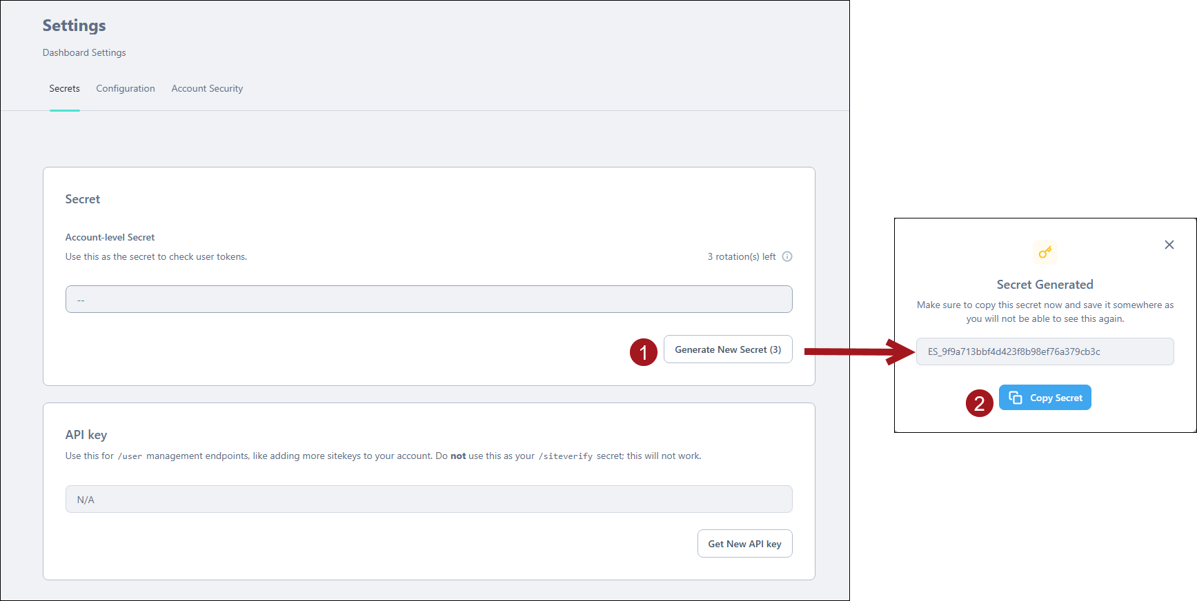 2. Follow hCaptcha's instructions to create your Site and Secret keys.
