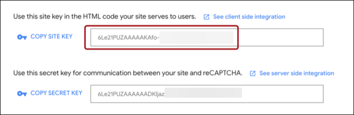 - Follow reCAPTCHA's instructions to create your Site and Secret keys.