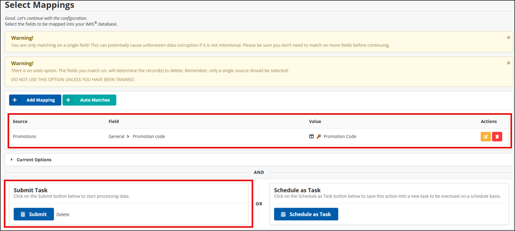 Removing a promotion code from iMIS requires the promotion code found in iMIS to be mapped.