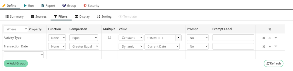 - In this example, Committee records were created today that were erroneous, so they need to be deleted. The query is filtered to find all committee records added since today.