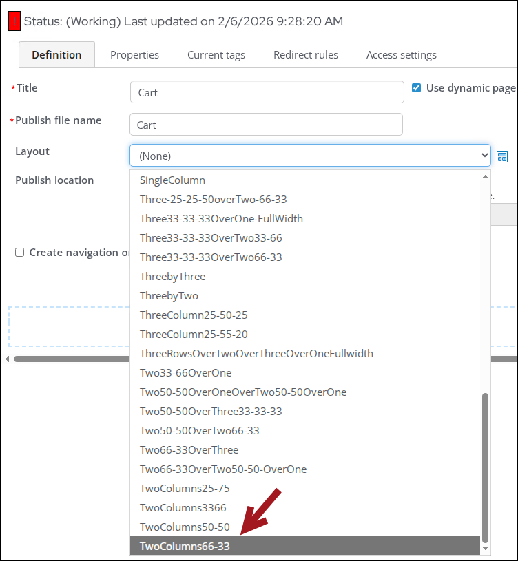- For Layout, select TwoColumns66-33.