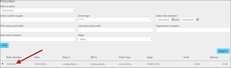 As a staff user, you can create a new order on behalf of a contact. Alternatively, contacts can create their own orders if you offer a public online store.