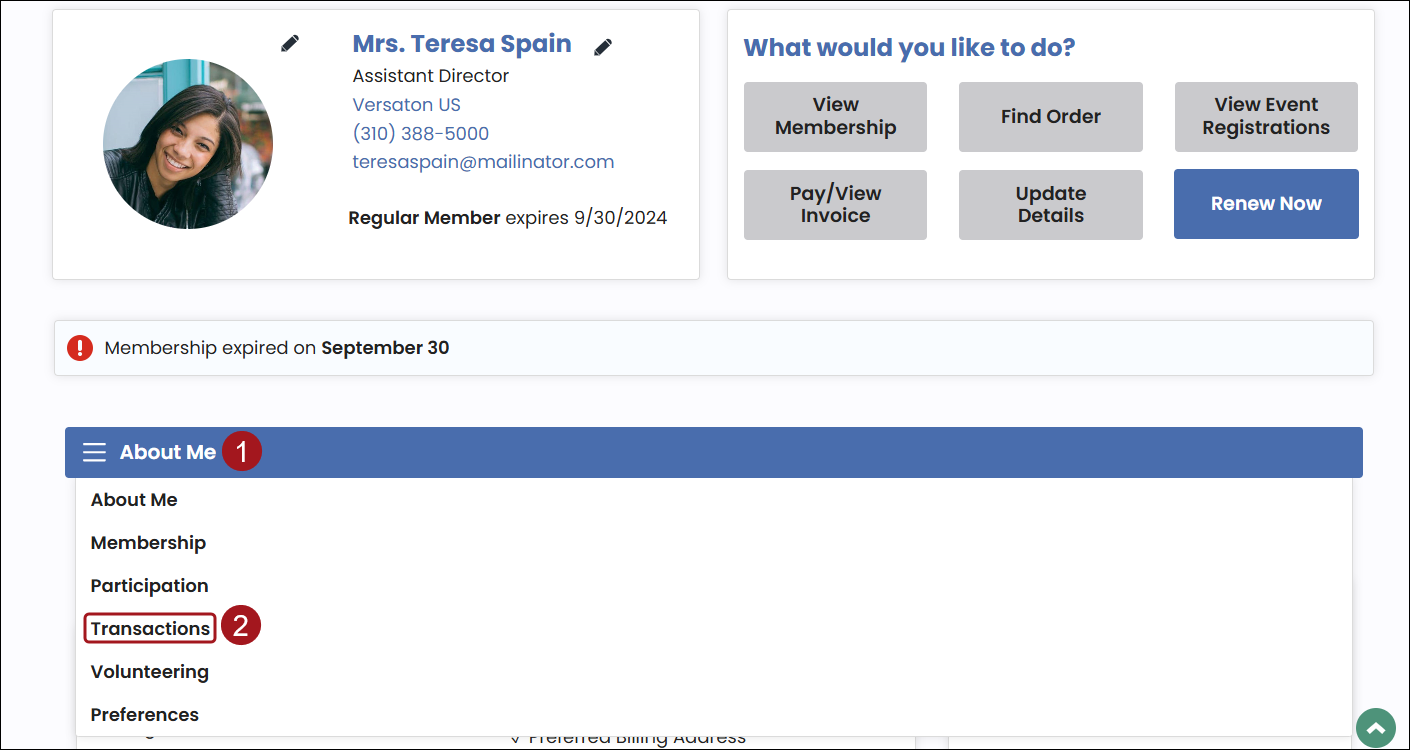- The member navigates to their account page, then clicks the Renew Now button.