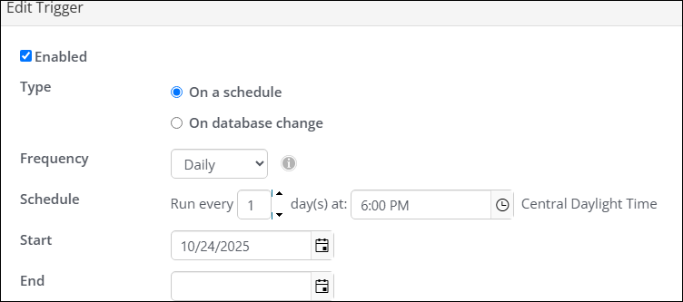 There is an out-of-the-box Process Automation stored procedure that you can create that will automatically set open batches to ready each day. This procedure finds all batches in the Batch table that are currently open (STATUS = 0) and have an EFFECTIVE_DATE that falls on today’s date, then updates them to ready (STATUS = 1). This ensures all of today’s open batches are prepared for processing.