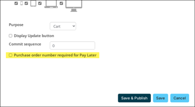 By default with Pay Later, the Cart is configured to ask for a purchase order number (PO number) . If you do not require a PO number while using Pay Later, you can disable the option.