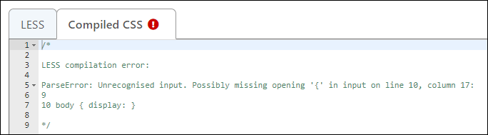 Additionally, you will see a less code editor that takes up the majority of the screen.