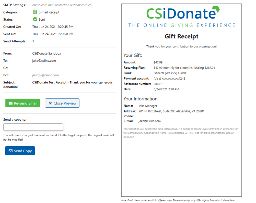 Note: Multiple email addresses are not supported in this field at this time. When sending a copy, the original Email object is not changed; instead, a copy is created. This means that if you no longer need the original email, you will need to delete it or let it expire based on your retention settings above.