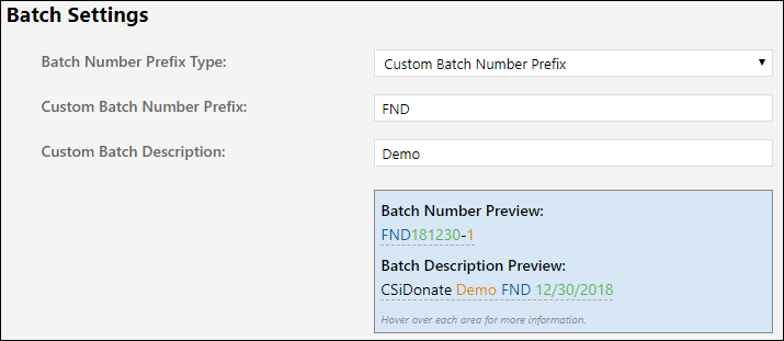 - Custom Batch Number Prefix – Enter a custom 7-digit or less batch number prefix string. This will be used regardless of any cash account settings above.