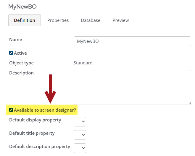 - The Available to screen designer? checkbox is enabled.