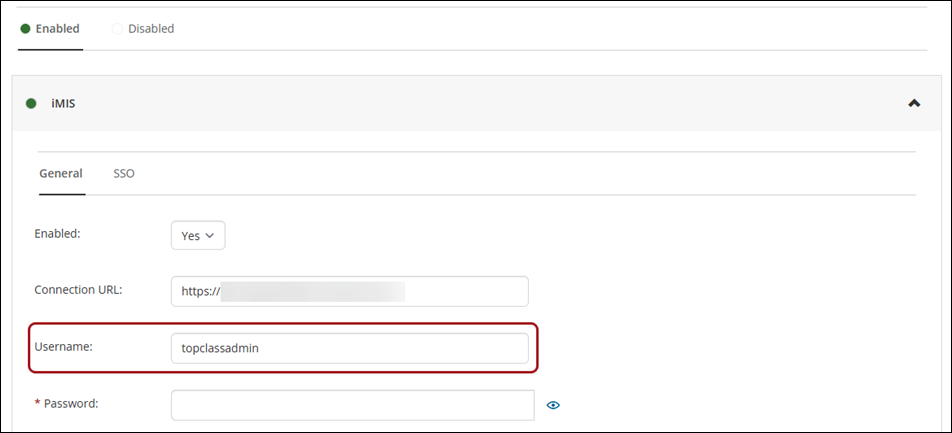 From TopClass, make note of the Username that is being used for the Integration Configuration: