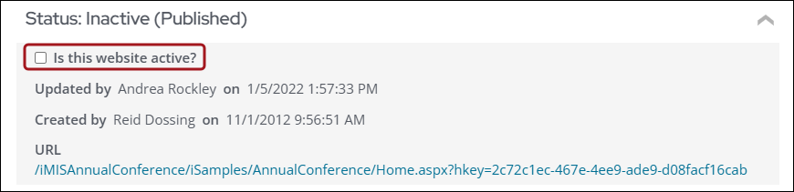 By default, custom websites and Quick Start sites are not active. Staff must activate websites before they are live.