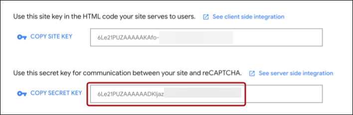 - Follow reCAPTCHA's instructions to create your Site and Secret keys.