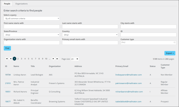 | Contact management | Manage contact, address, and demographic information for individuals, organizations, or groups. |