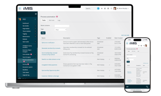 Process automation uses scheduled tasks and alerts that can displayed on the Staff administrative site or your public website.