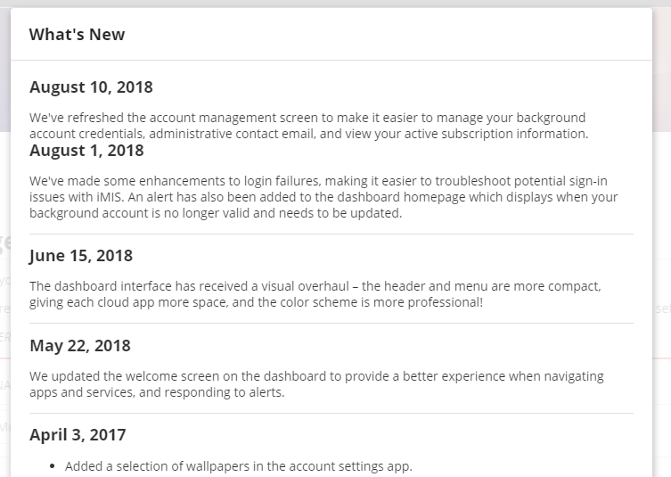 - The Person icon in upper right corner of the dashboard is used for What’s New, Support, and Logout.