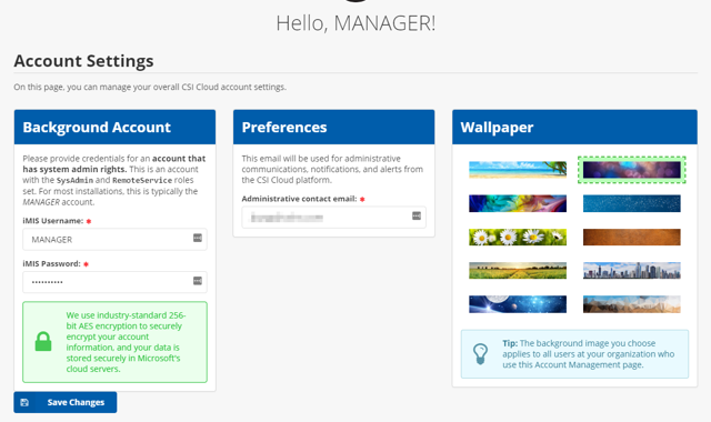 This allows the client admin to enter the background account that is used to access the iMIS DB. This account must be the manager account or manager equivalent.