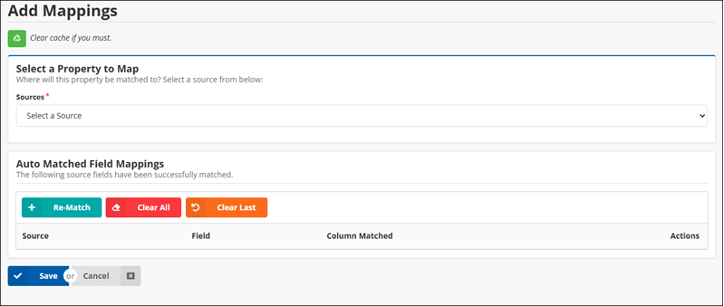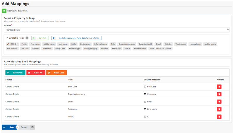 - Re-Match - This will attempt to re-match your available fields to the source columns again.