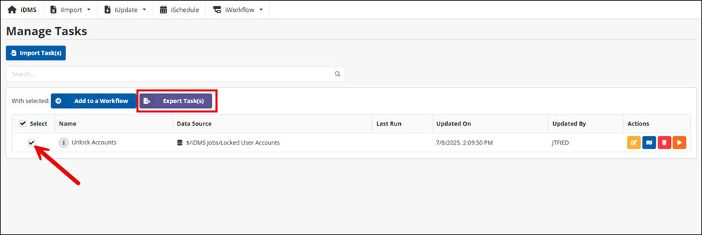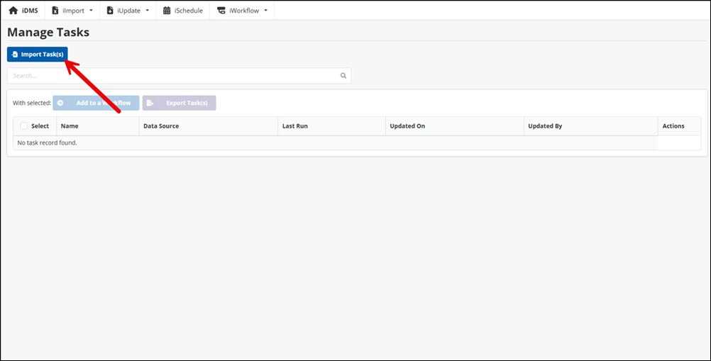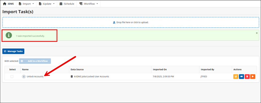 - Either drag and drop the file in the dotted box or click and select the downloaded Task file. If successful, the success message appears.