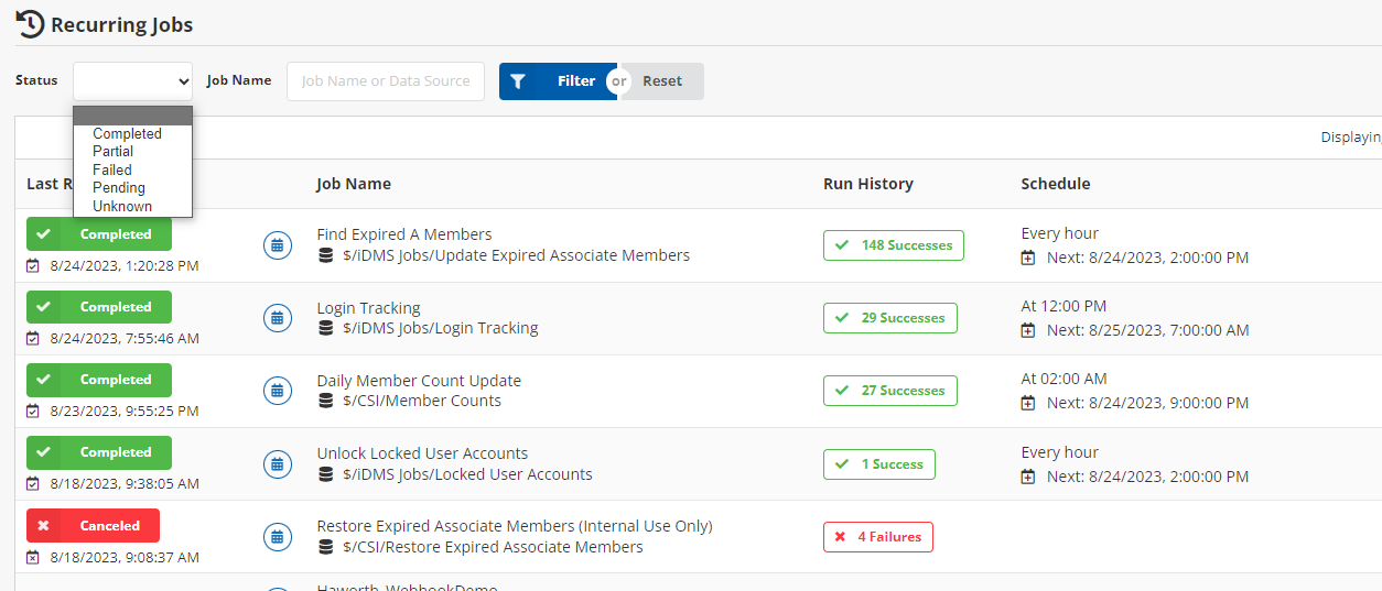 - Recurring Jobs - Jobs that have been built to run on a schedule.