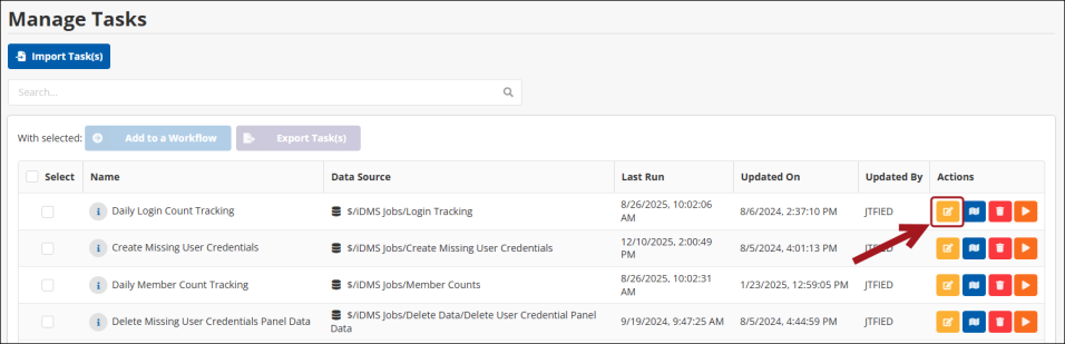 - Click he yellow Edit Task Properties button under the Actions row.