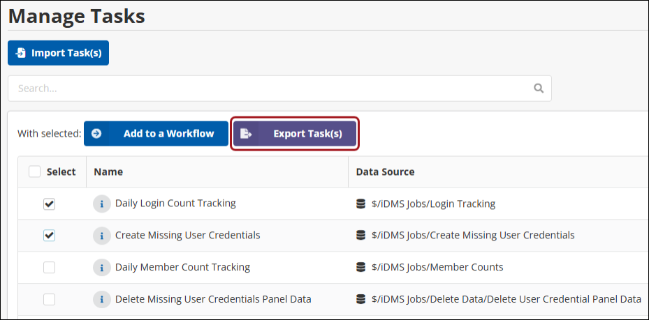 If the import process is a success, the new task appears in the task list. If the import fails, ensure that the IQA query exists in iMIS before trying the import process again.