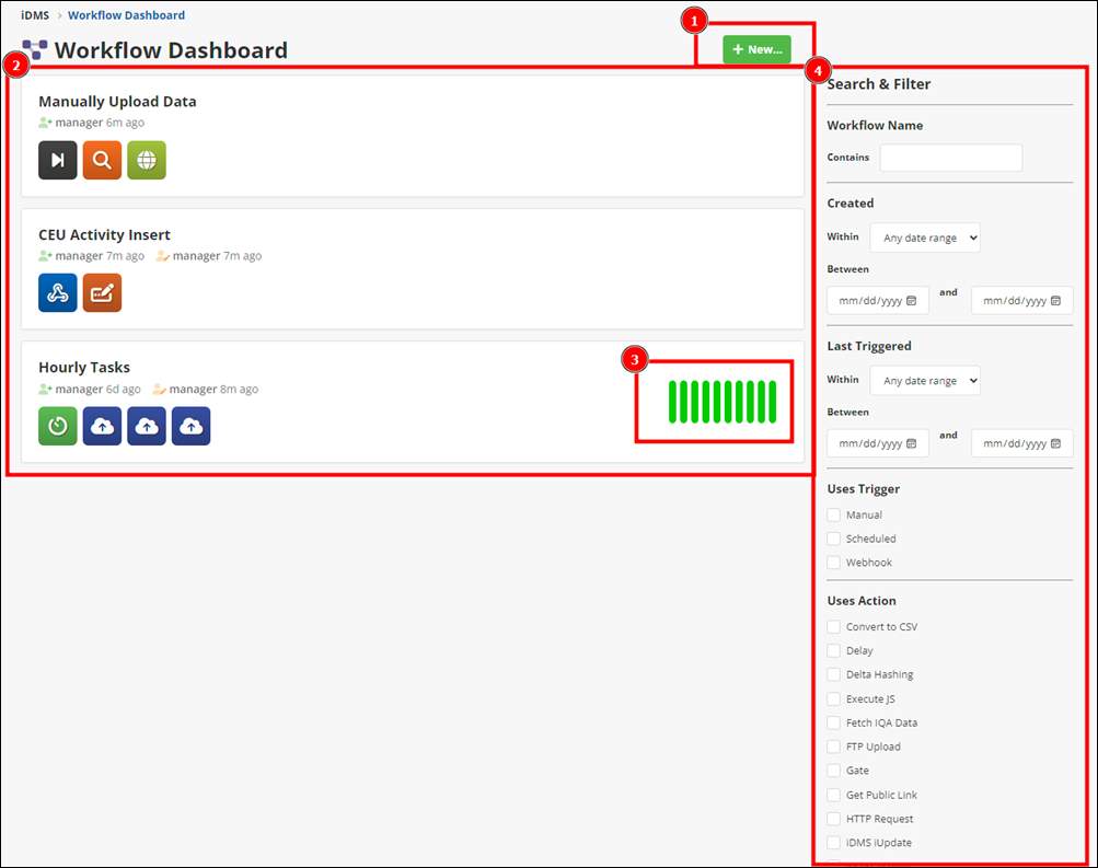 Note: If multiple actions are selected, they are “OR”ed together. For example, selecting “Gate” and “iDMS iUpdate” will show workflows with either action.