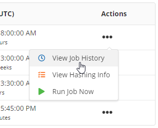 To view the past runs for a particular job, select the Actions menu, and select View Job History.