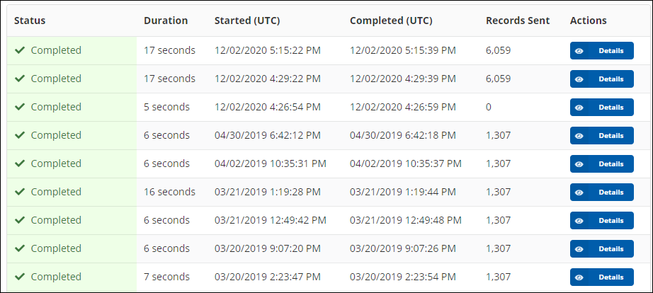 - How many records were sent (if delta hashing is enabled, the count reflects the number after the hashing occurred)