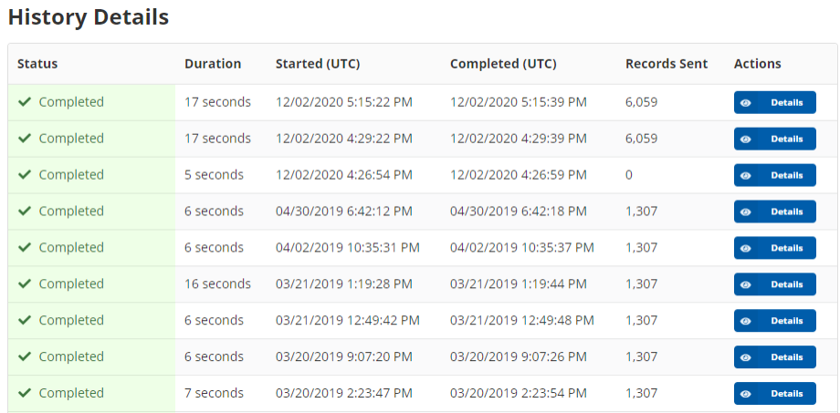 - How many records were sent (if delta hashing is enabled, this is the count after the hashing occurred, i.e. the actual number of records that were transmitted)