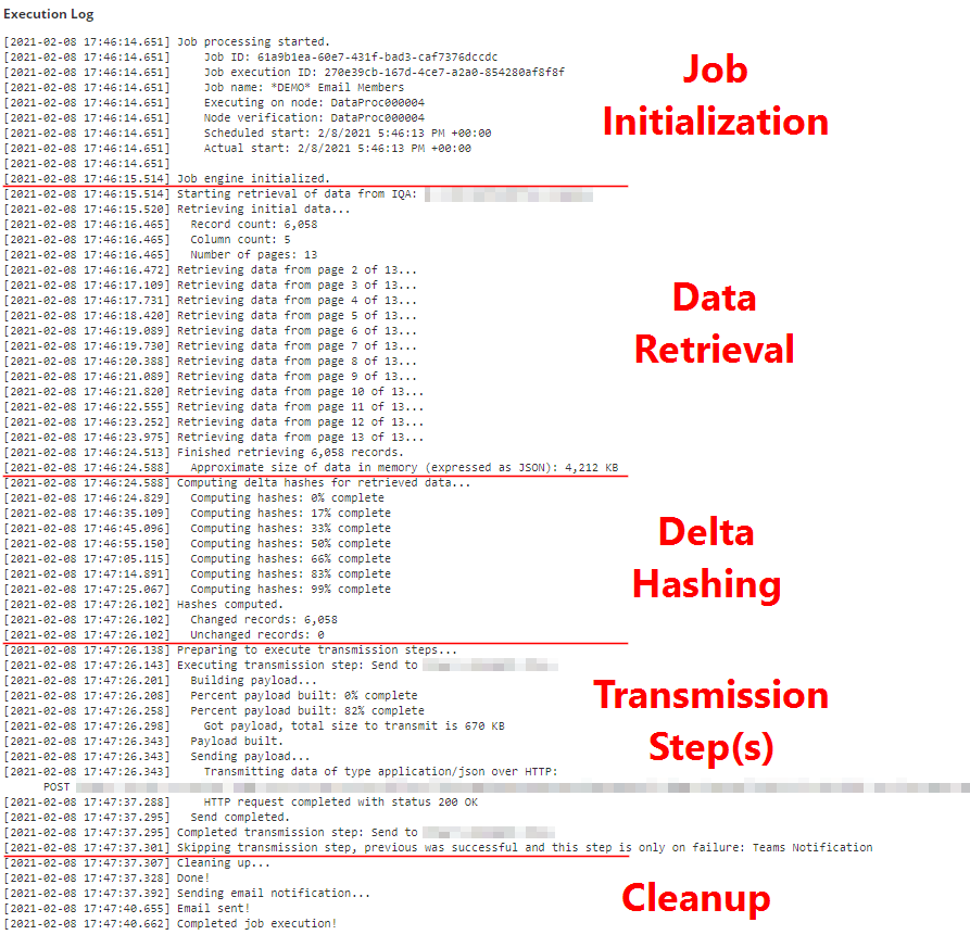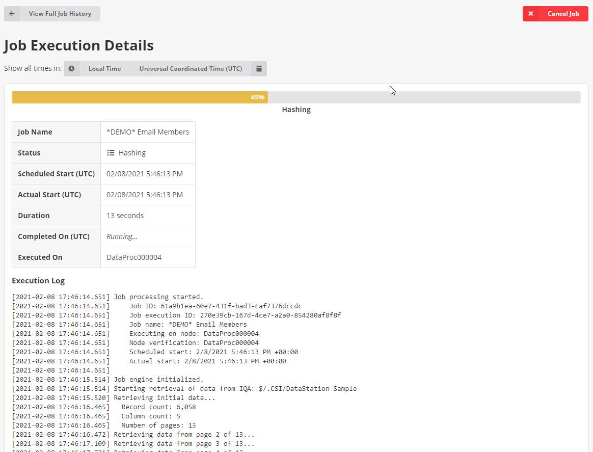 Note: If you view a job's execution log before it is finished, the screen will update in real-time. Do not refresh the browser.