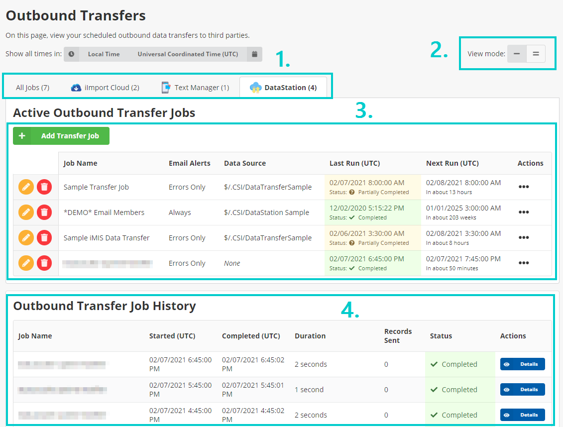 - App Filter – Filter jobs to specific connected apps. For example, click DataStation to only see jobs that were created via the DataStation.