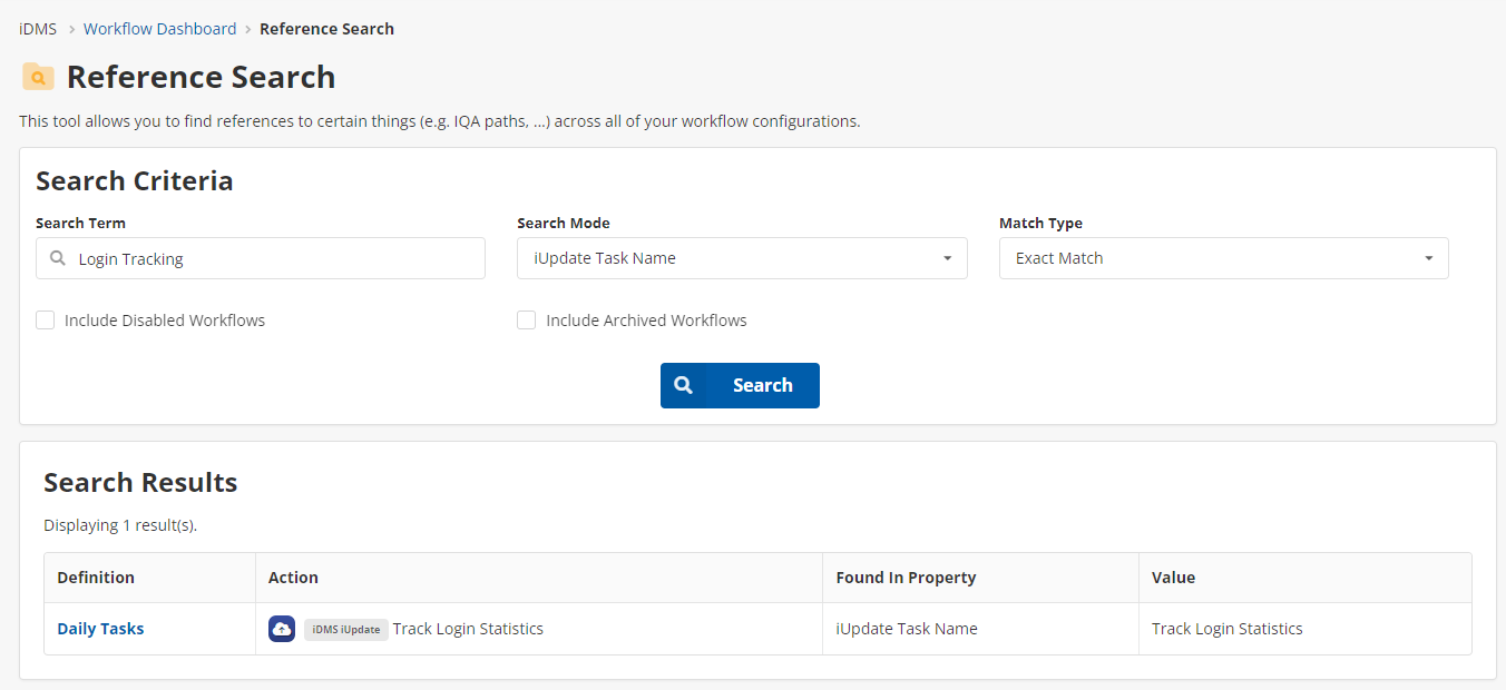 Access Reference Search by going to iWorkflow > Utilities > Reference Search.