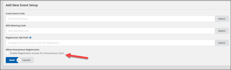 - Allow Anonymous Registration: This will allow the user to register for the event from within the Cvent application without regard for who they are or whether they are allowed to register or not.