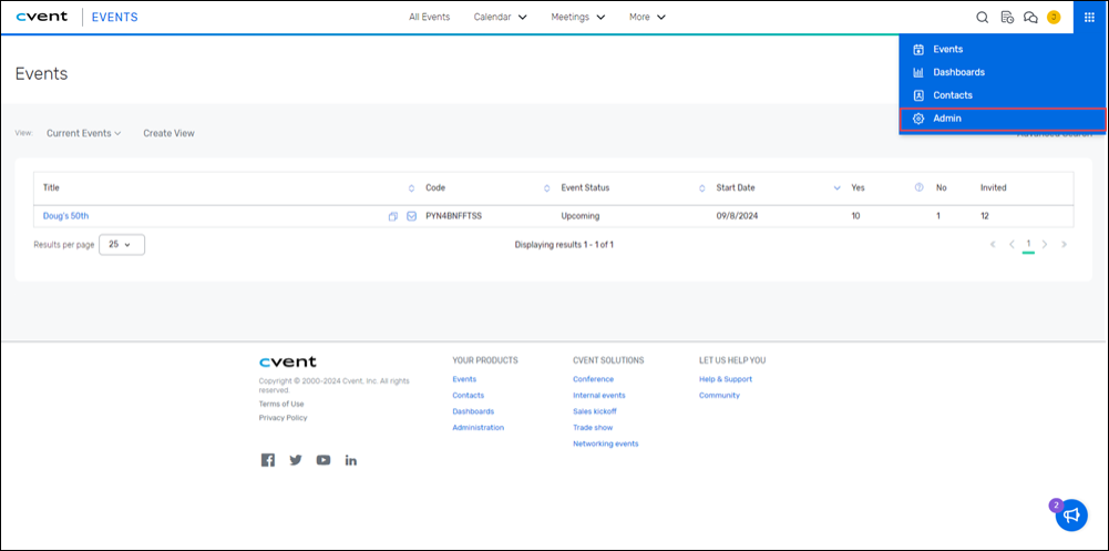 - If you do not see Cvent, then you may need User Assignments to be updated.