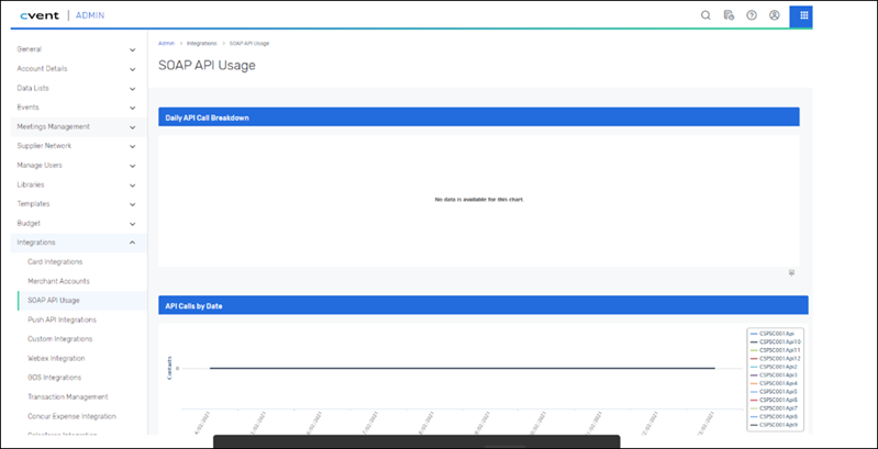 To review your SOAP API Usage and configuration, go to Admin > Integrations > SOAP API Usage